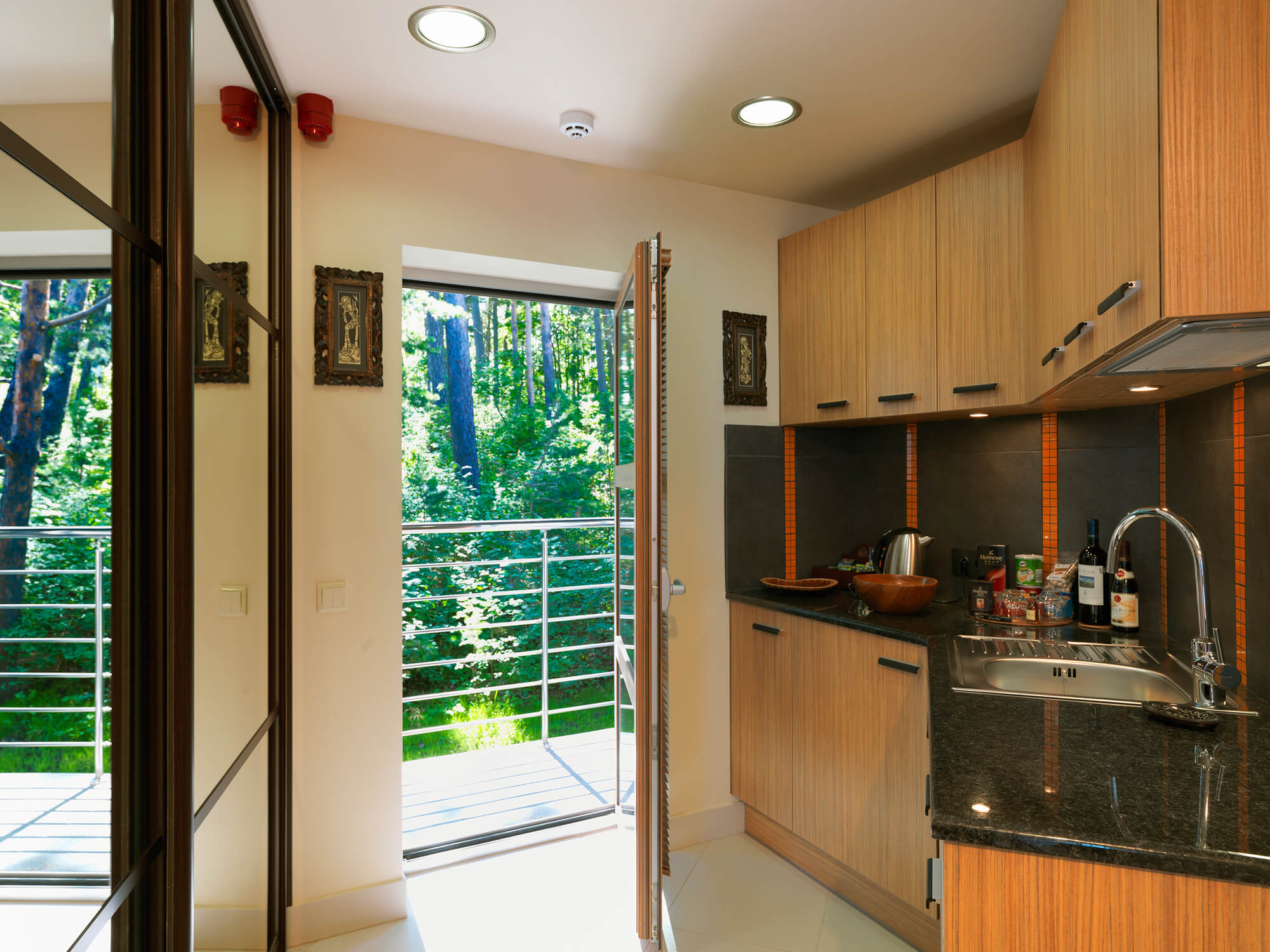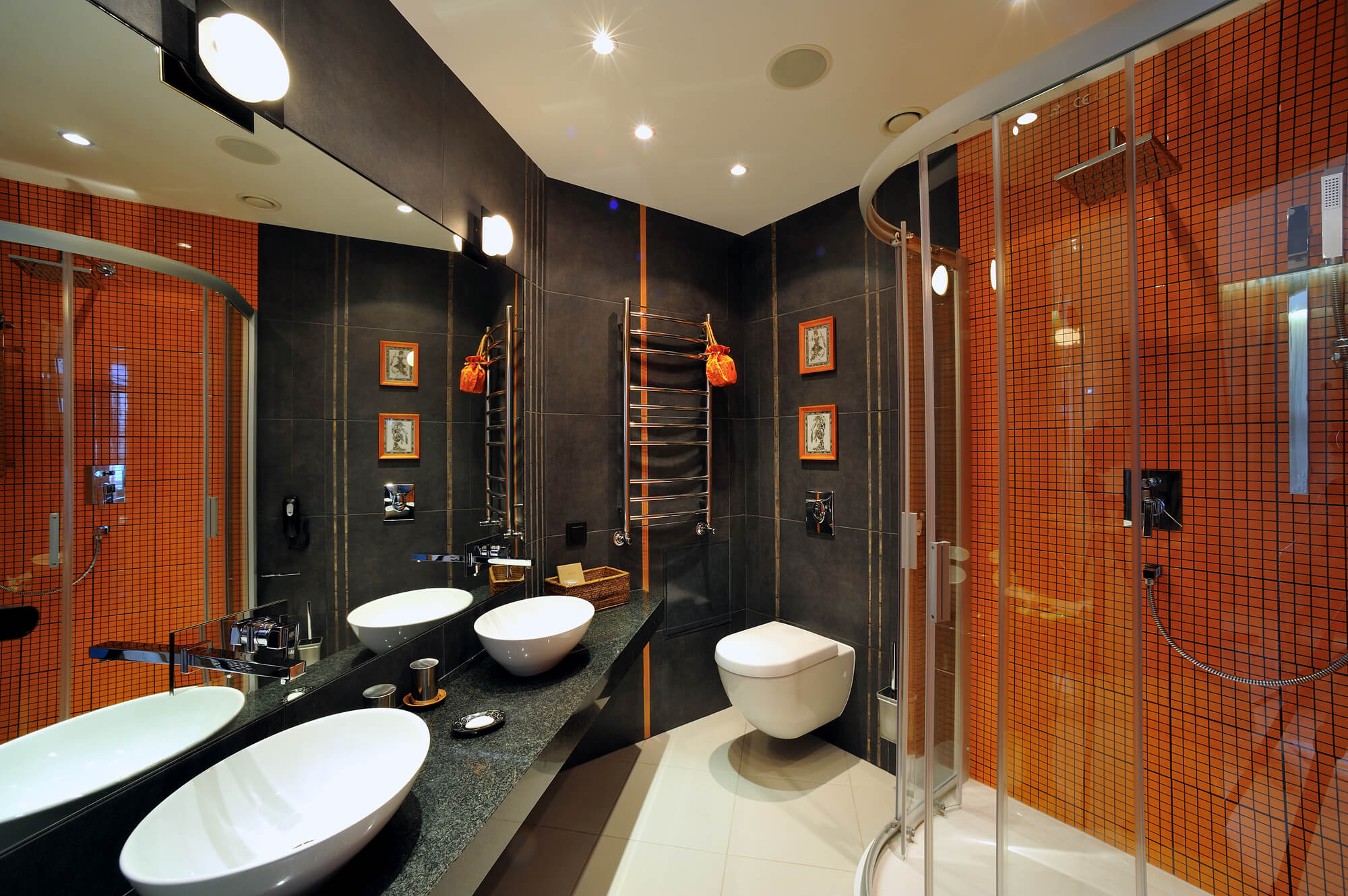 А в ванной комнате, словно отражение залитого солнцем номера, ярко-оранжевый кафель сразу создает свое настроение. Психологи давно заметили, оранжевый цвет – цвет блаженства, теплоты, он в любую погоду радует глаз и способствует хорошему настроению.