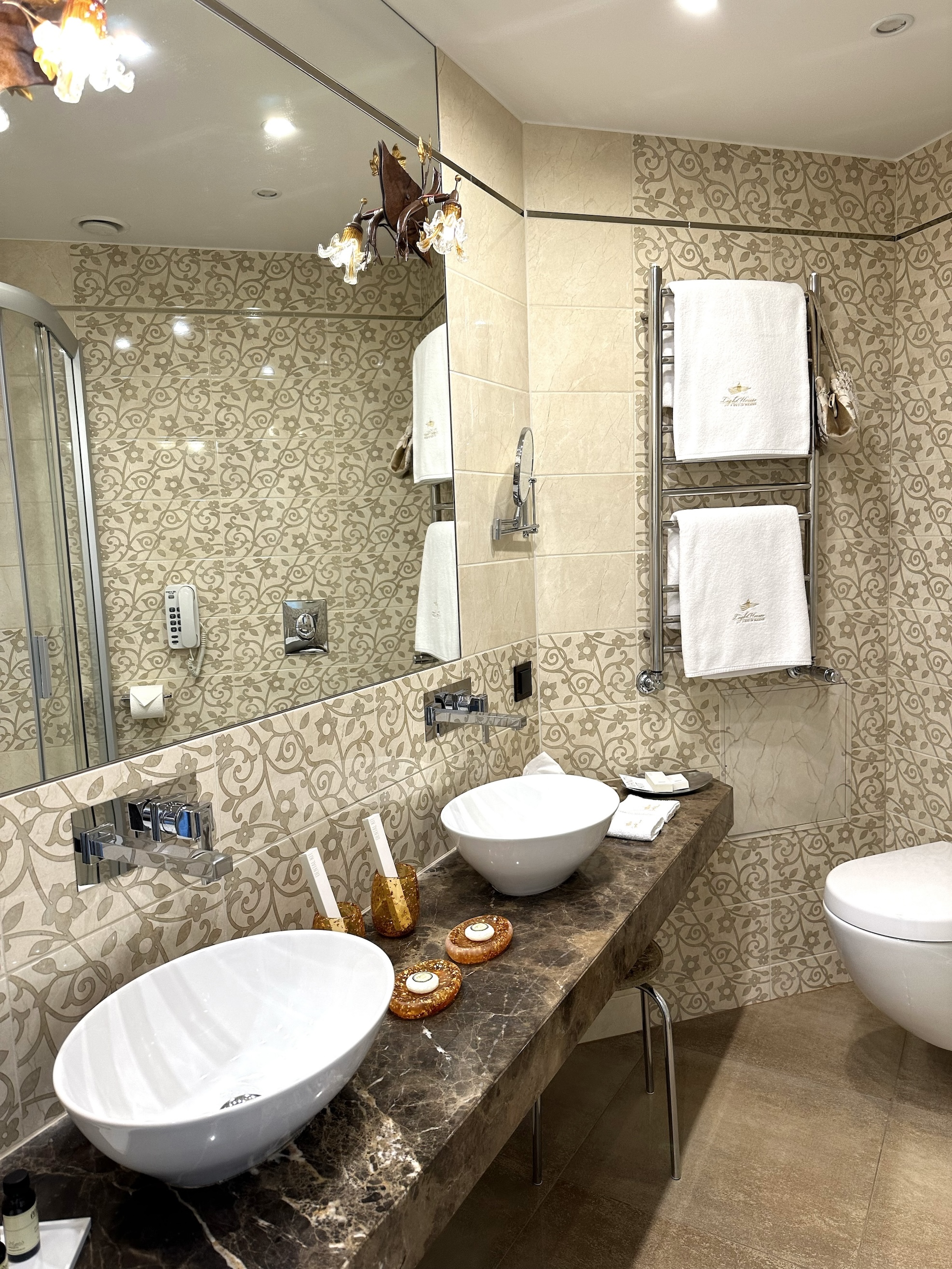 The Light fixtures reminding of torches in the castles of the old times of the Spanish medieval knights, give the rooms the special color. All this intricate mosaic weaves the history with the present.