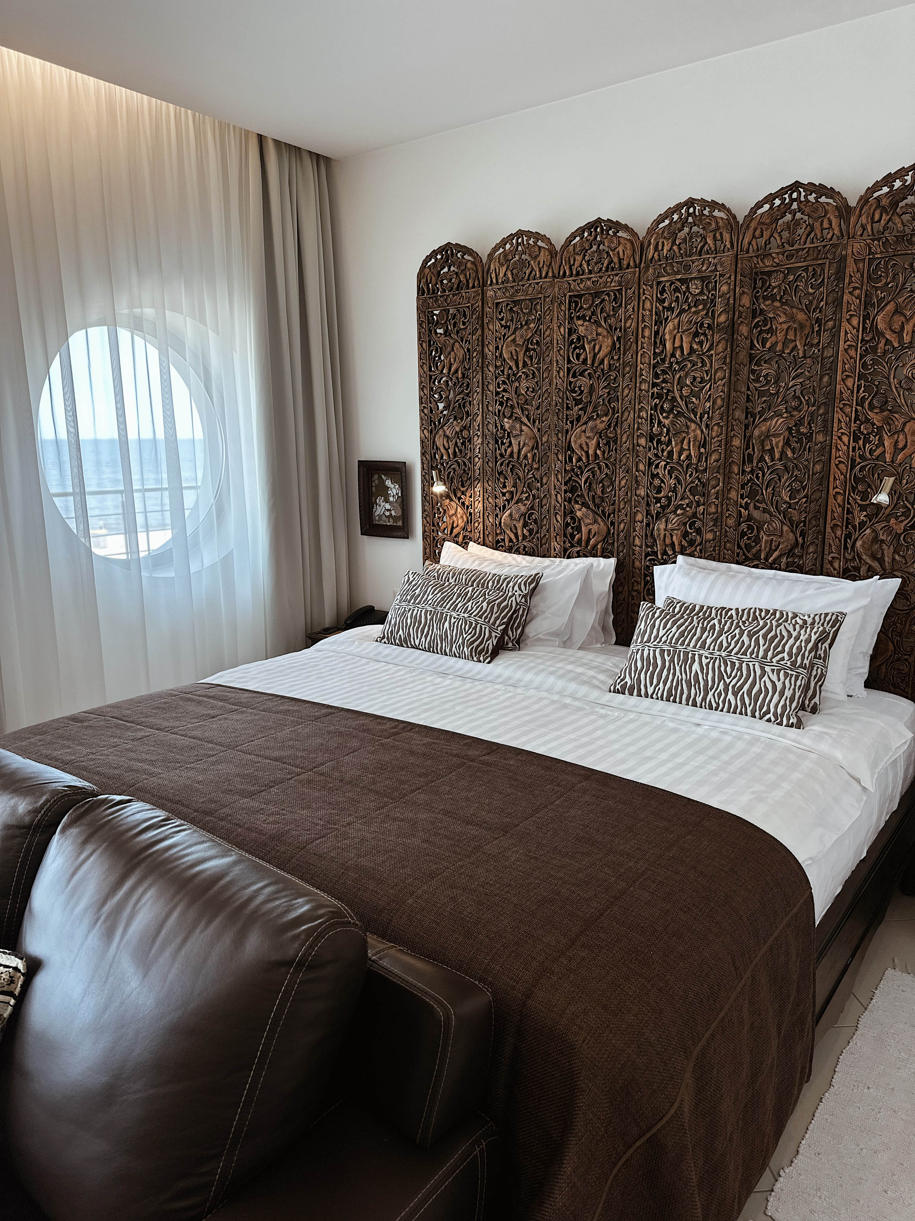 Numurs “Taizeme” ir tikpat spilgts, krāšņs un savdabīgs kā pati valsts. Galvenais interjera akcents ir dekoratīvais aizslietnis un milzīgās gultas grieztais gals, kas numuram piešķir īpašu stilu. Kā arī divi griezti panno no koka ar graciozu taizemiešu sieviešu attēlu. Oriģinālās dzelzs lampas vakaros sēj gaismas pērlītes, piešķirot numuram noslēpumainību. Milzīgais zilonis kā sargs stāv pie ieejas, sargājot mieru un savrupību.