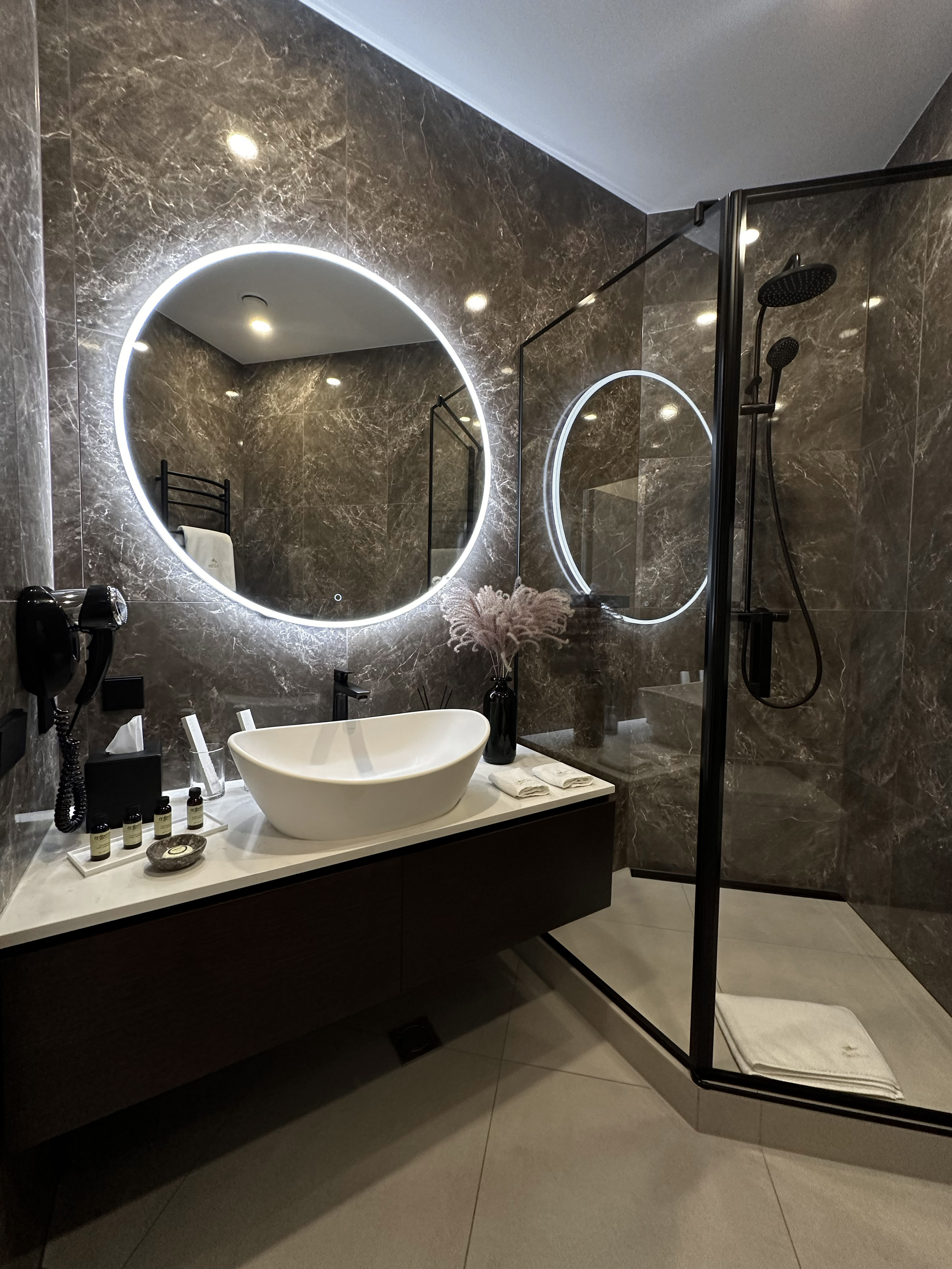 Dabīgie materiāli, akmens apdare un silti koka akcenti atgādina par Vidzemes gleznainajām ainavām. Plašais un gaišais interjers rada ideālus apstākļus atpūtai, un katra numura detaļa ir piepildīta ar dabas harmoniju un mūsdienu komfortu.