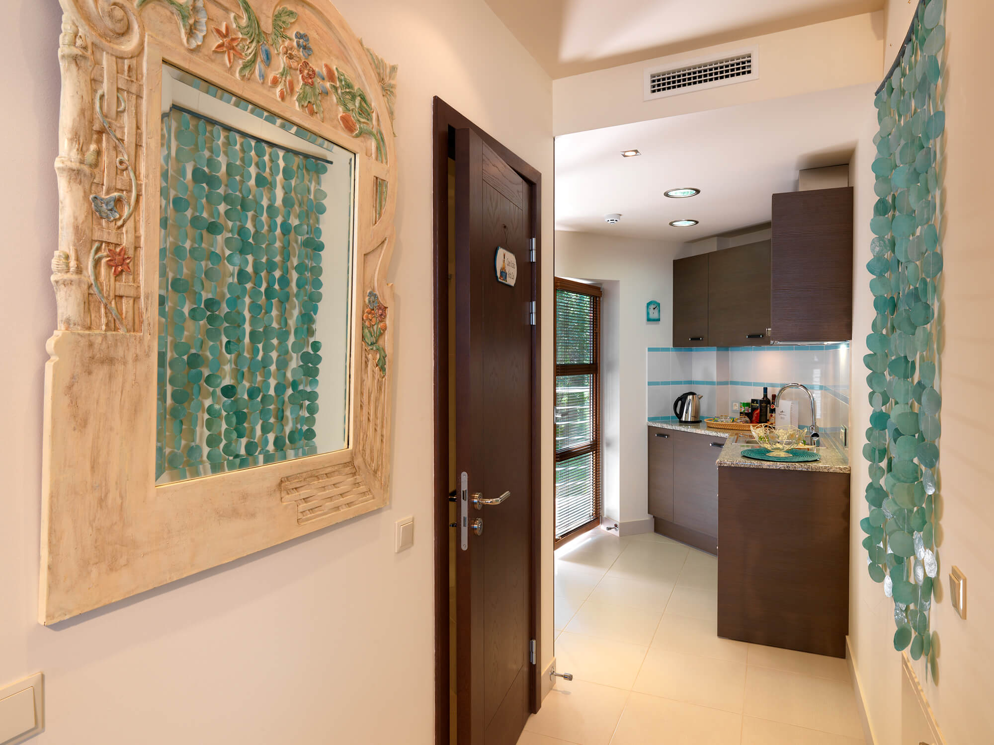 The Guest room “Italy” is as if created for love. It is so romantic and light. In the mysterious depth of a mirror in carved frame just like the sunny glares on the surface of the sea are reflected funny shells of an original carved panel.